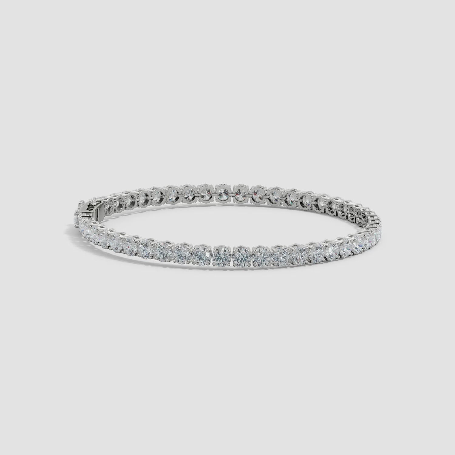 This captivating and luxurious tennis bracelet graces the wrist with over 20 carats of radiant D-color moissanite stones, each individually handset in a gleaming, high-polish finish that rivals the brilliance of natural diamonds.